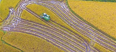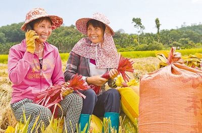 金黃的稻田映著金色的陽光,成熟的稻穗壓彎了稻稈……近日的海南定安,處處都是收獲的喜悅。