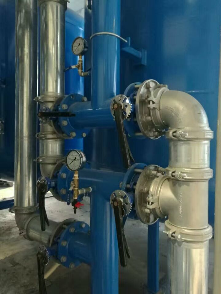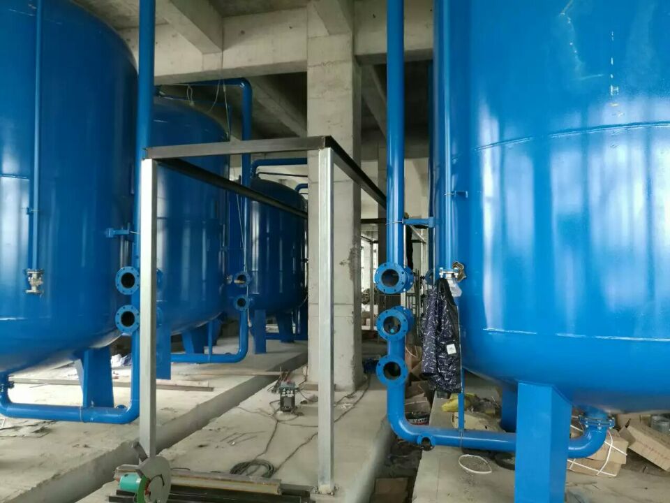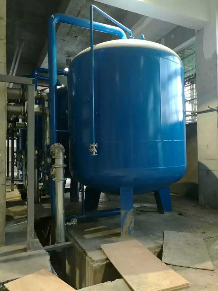 蘇州榮軒環(huán)保設(shè)計(jì)的這套自來(lái)水預(yù)處理設(shè)備,主要目的是去除原水中的懸浮物、膠體、有機(jī)物和余氯等妨礙后續(xù)反滲透運(yùn)行的雜質(zhì),自來(lái)水首先進(jìn)入砂濾罐:φ2.6m*4.4(總高),垂高2.0m,鋼板厚度10mm,級(jí)別Q235,內(nèi)表面襯膠防腐5mm,外表面SA2.5級(jí)噴砂除銹至金屬光澤后,噴涂阿克蘇諾貝爾油漆。內(nèi)部填充粗細(xì)粒徑石英沙,石英砂過(guò)濾器主要去除水中的懸浮物和膠體,水中大部分懸浮物和膠體在經(jīng)過(guò)濾料截留而去除。