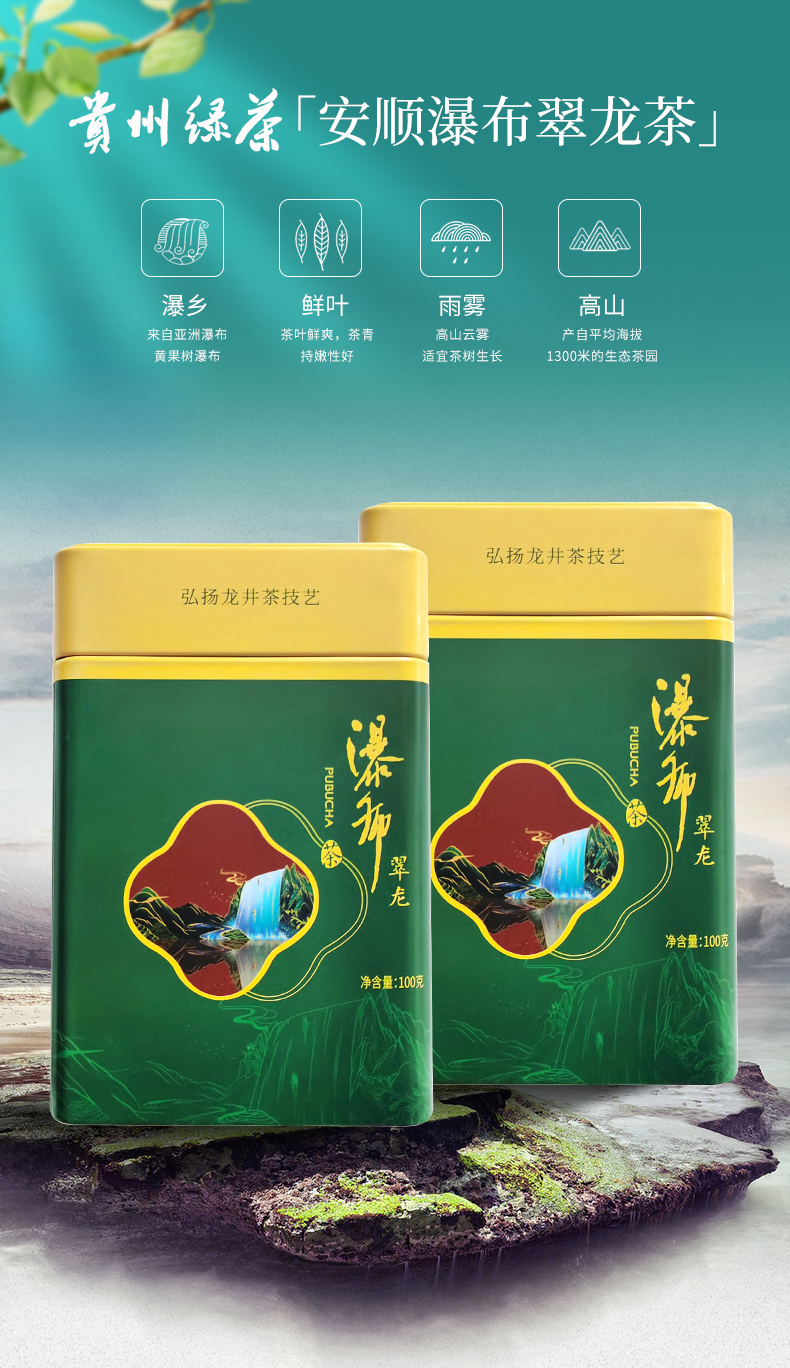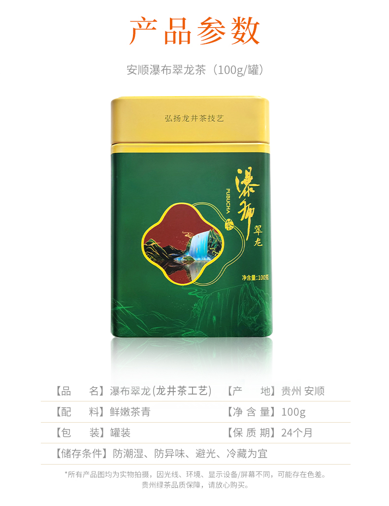 貴州綠茶 安順瀑布茶辦公茶2021新茶 特級翠龍100克罐裝